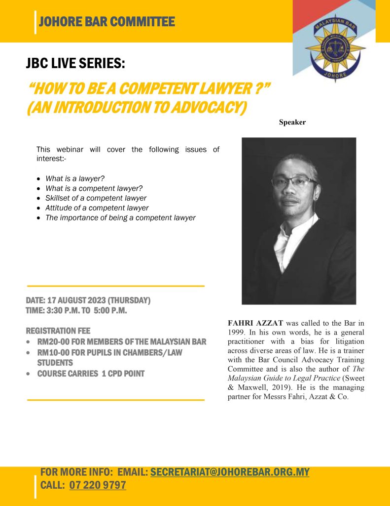 Circular No. 50/2023: Webinar on “How to be a Competent Lawyer?” (An Introduction To Advocacy) | 17 Aug 2023