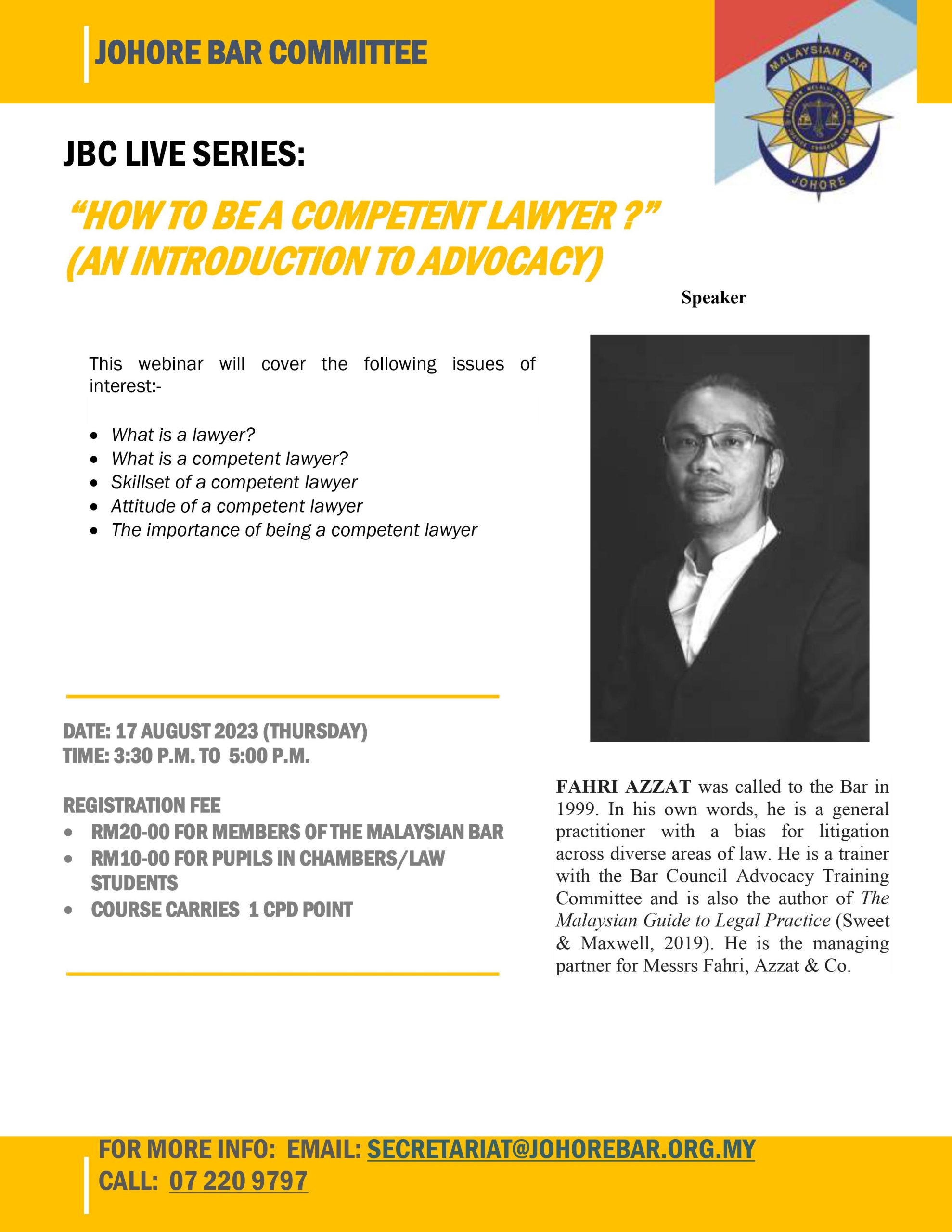 Circular No. 50/2023: Webinar on “How to be a Competent Lawyer?” (An Introduction To Advocacy) | 17 Aug 2023